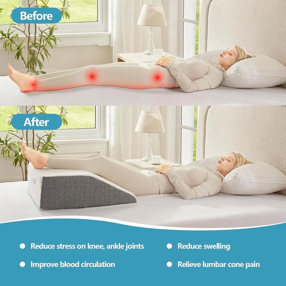 ERGONOMICAL SHAPE: Our elevated leg pillow measures 24 inch * 22 inch * 8 inch with an inclination angle of 45 degrees, ergonomically designed to help promote blood circulation